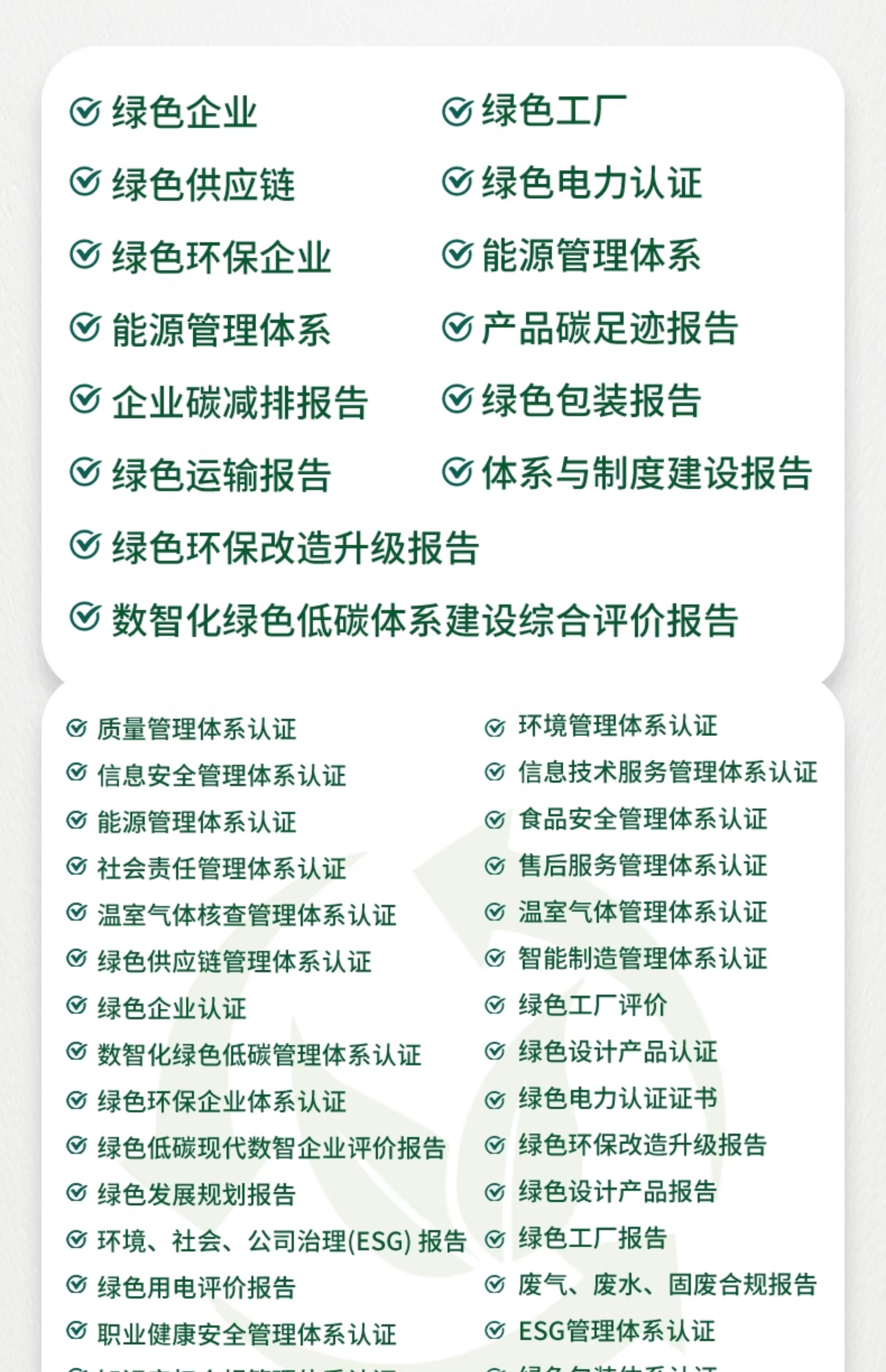 绿色低碳绿色工厂供应链碳足迹绿色建材绿色认证ESG绿色电力证书