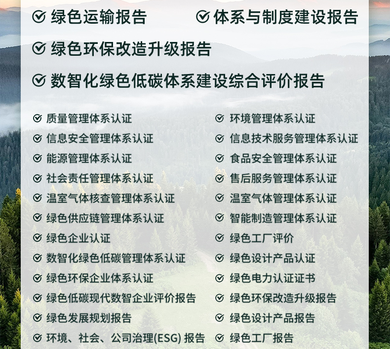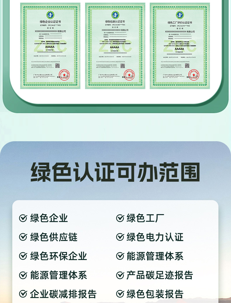 绿色认证绿色工厂供应链碳足迹能源管理体系认证电力证书绿色报告