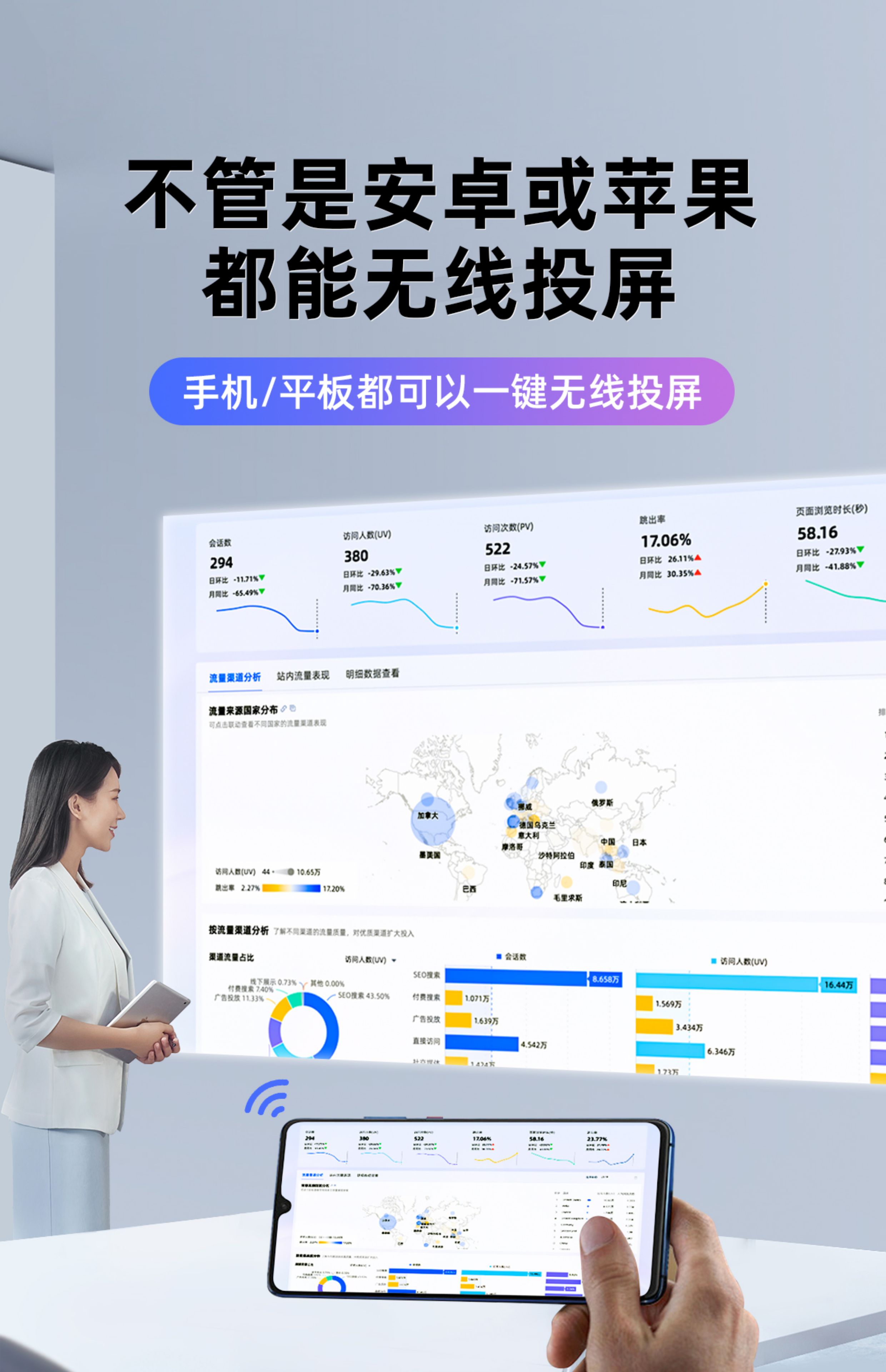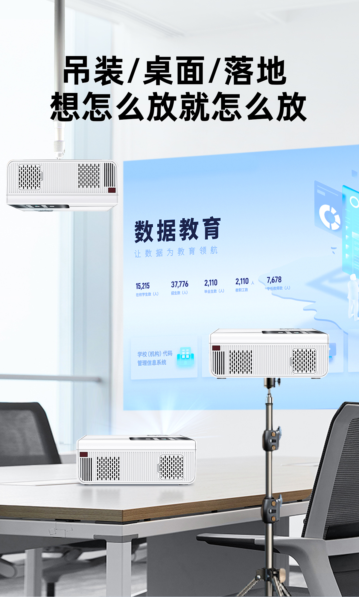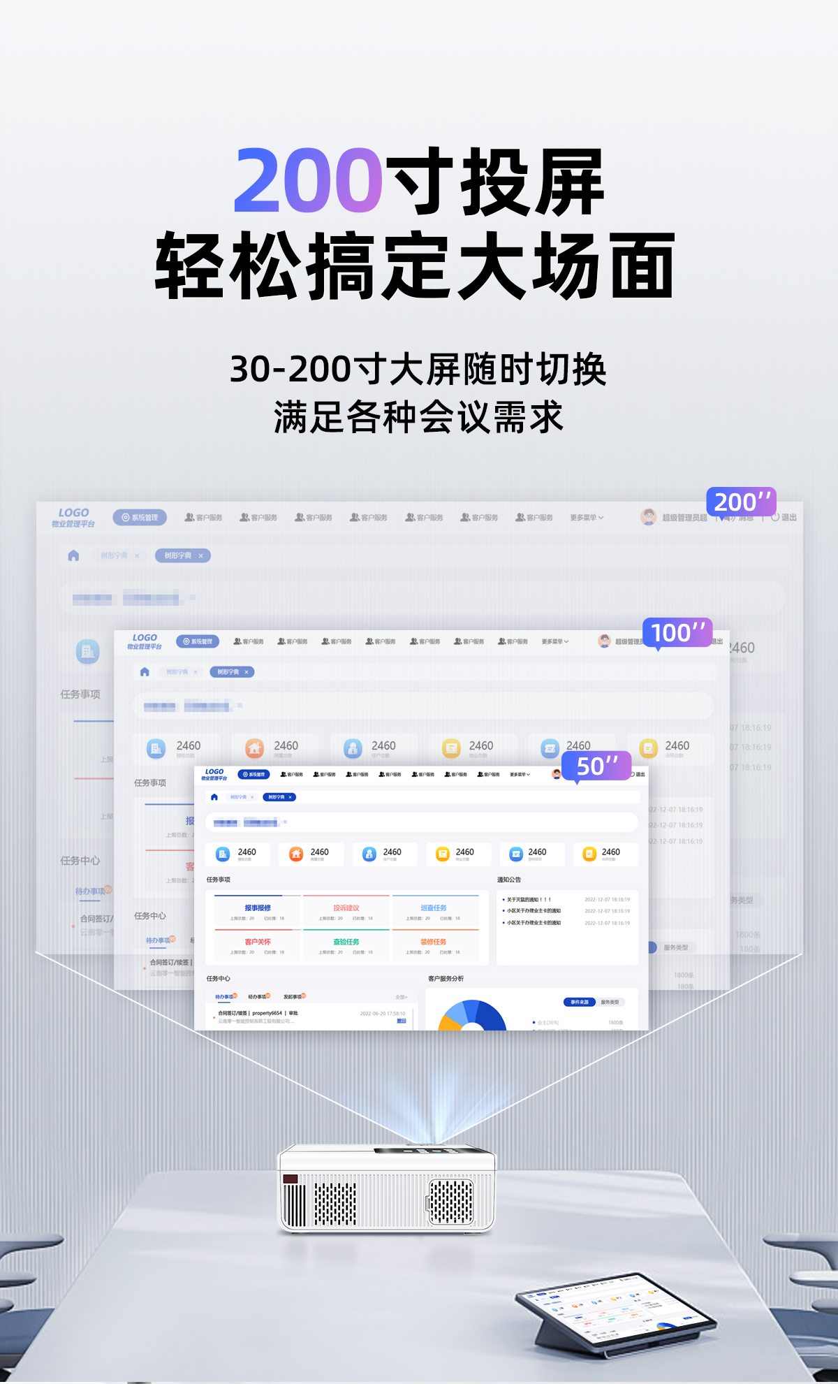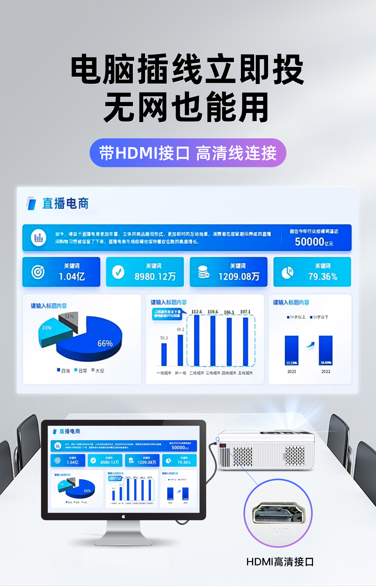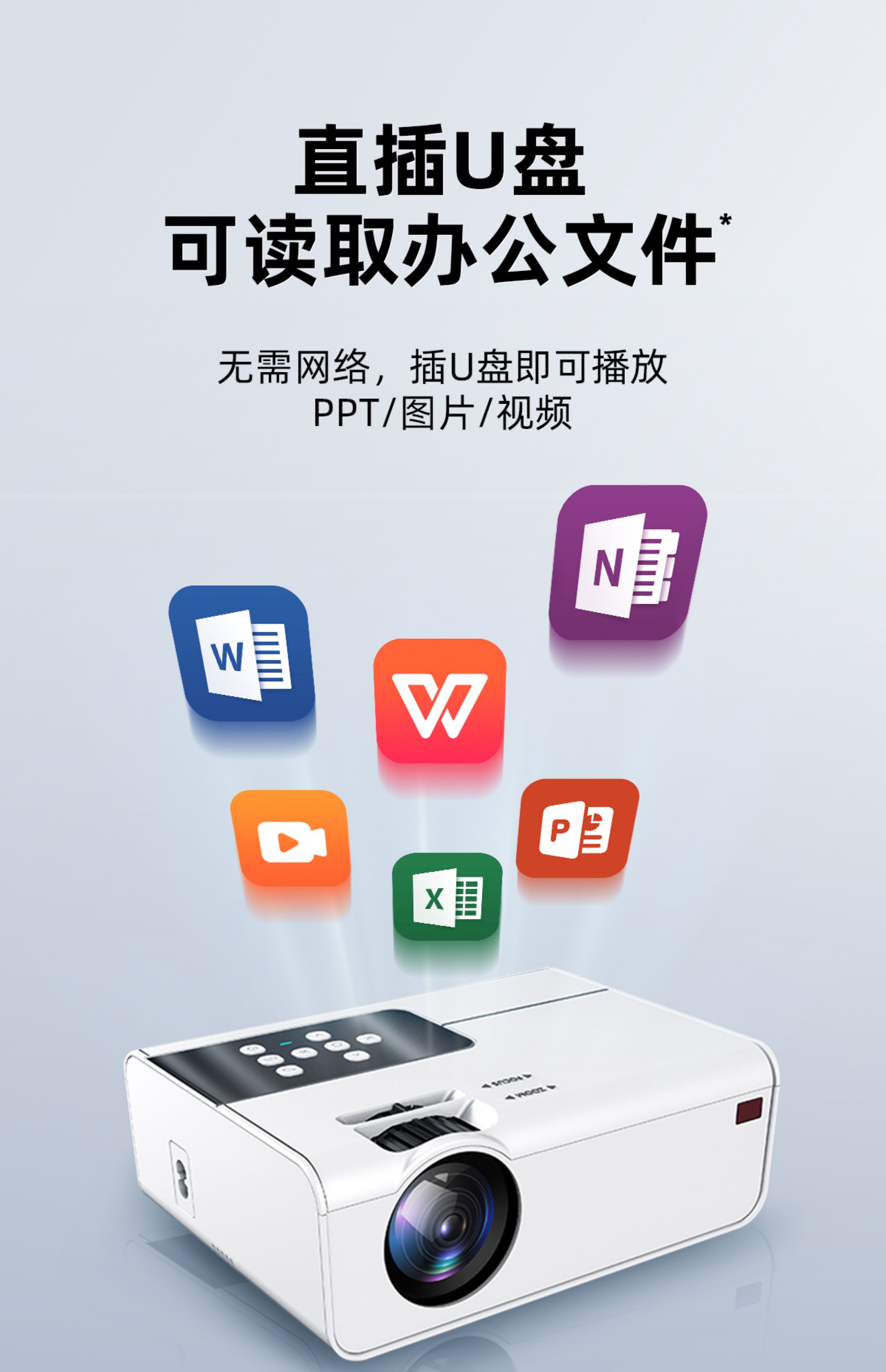 商务办公用会议投影仪可连台式电脑笔记本可插u盘ppt投屏小型移动便携式公司办公室开会培训教学专用白天高清