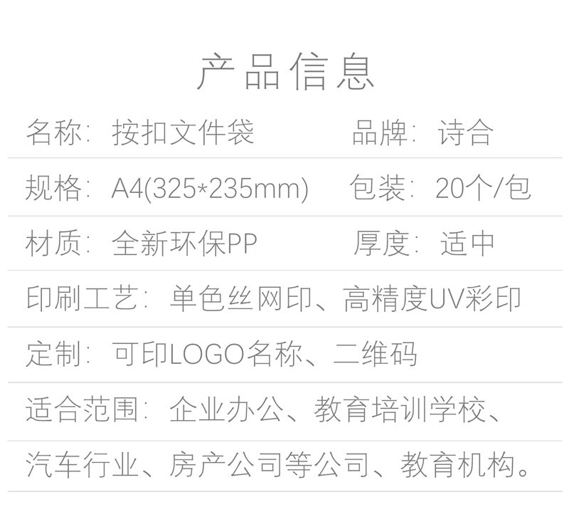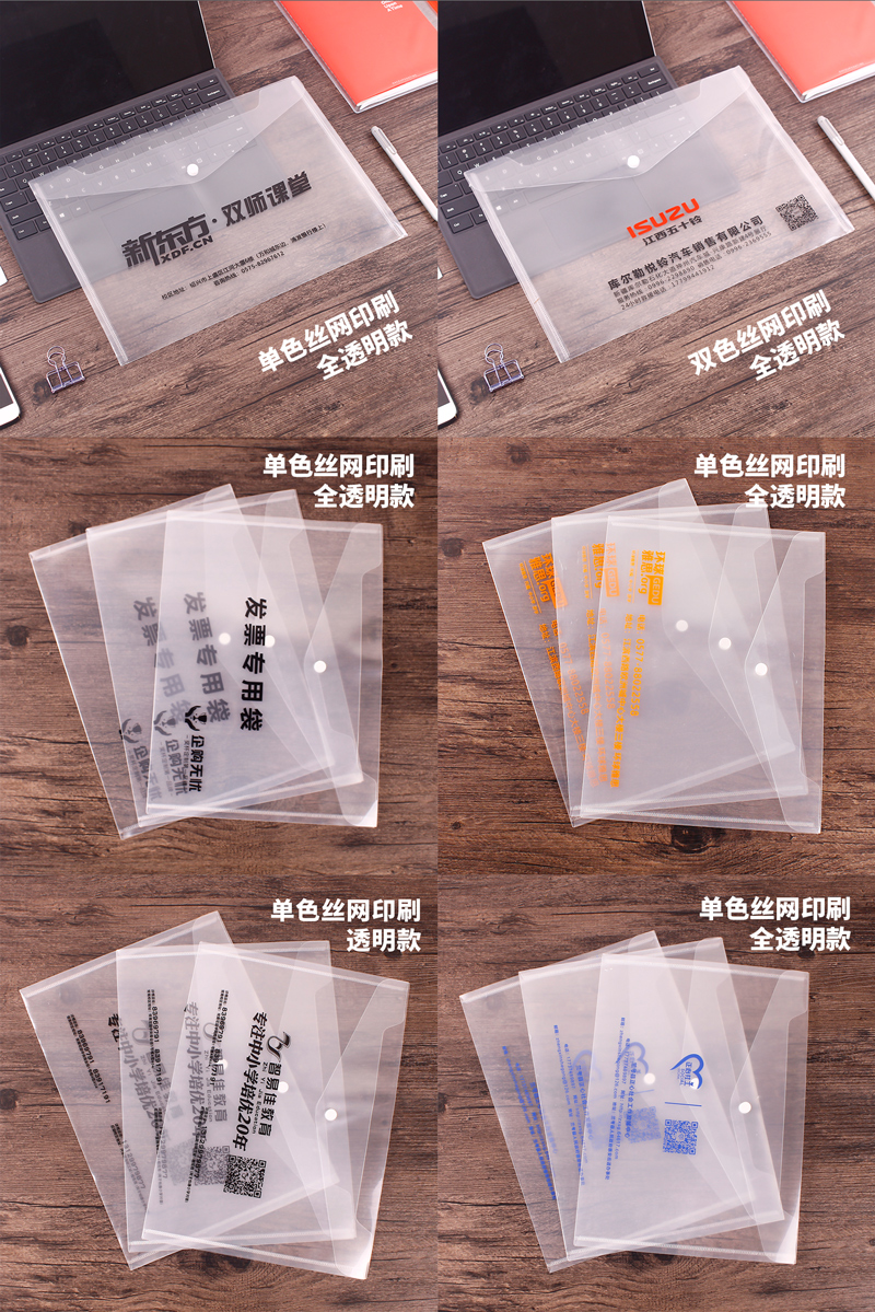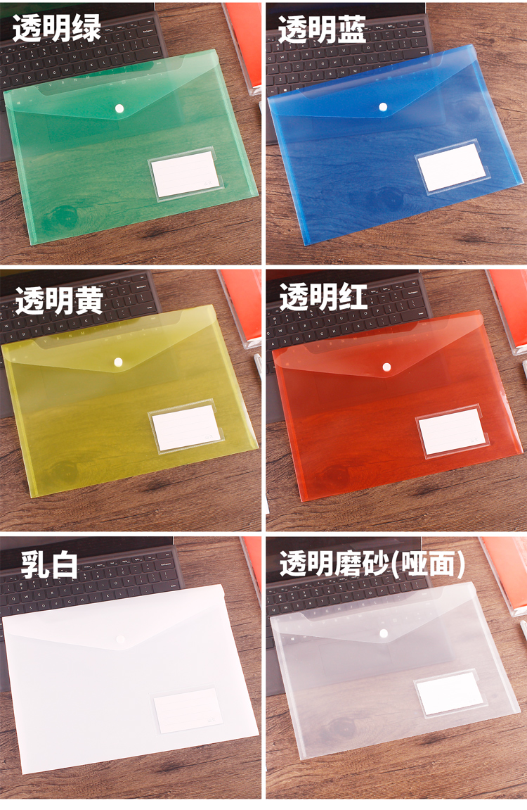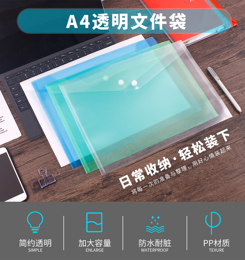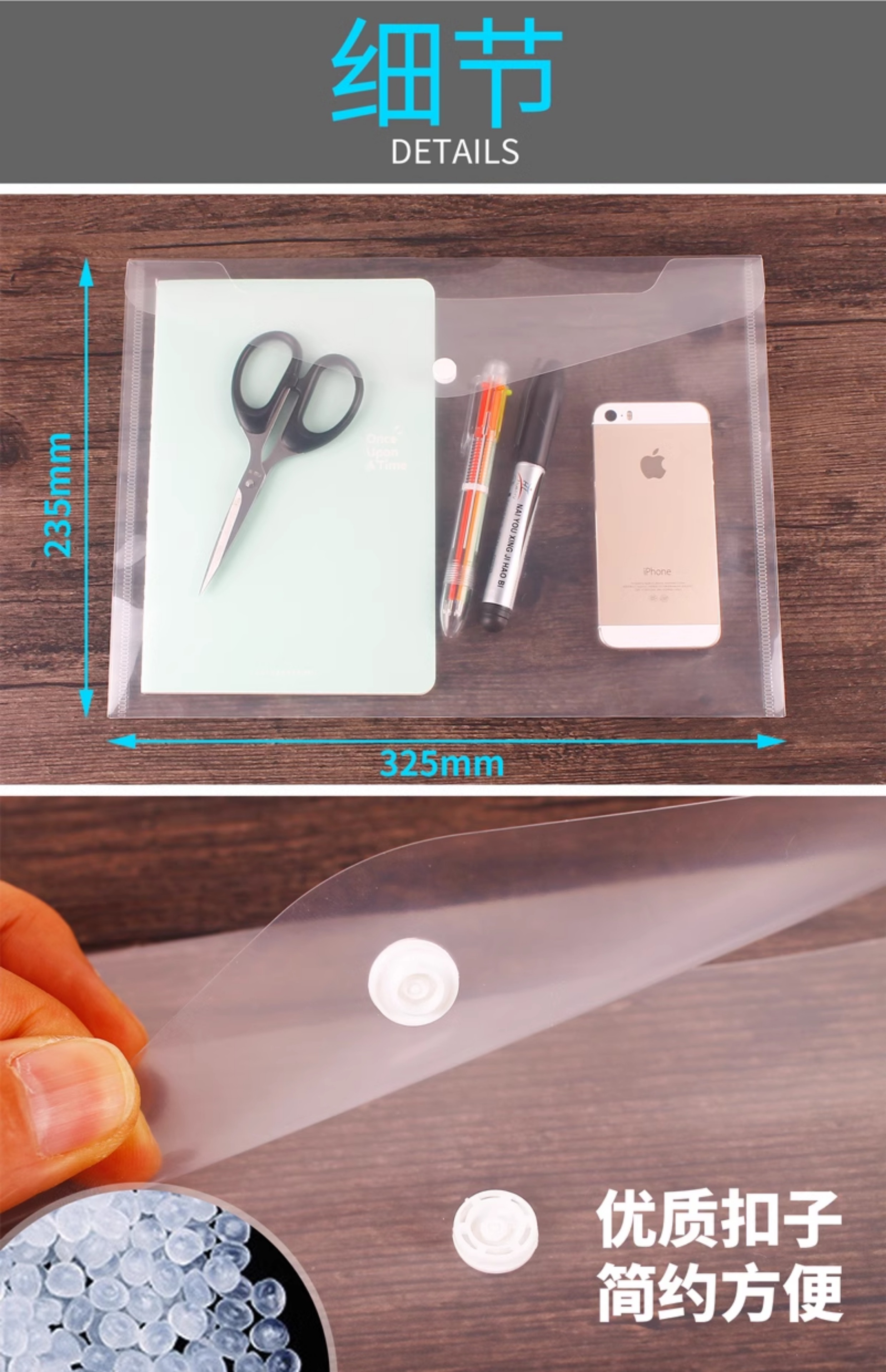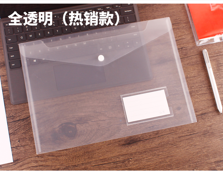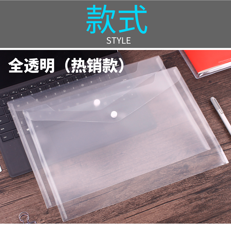 山久加厚塑料按扣文件袋透明a4带标签档案文具袋学生收纳定制logo