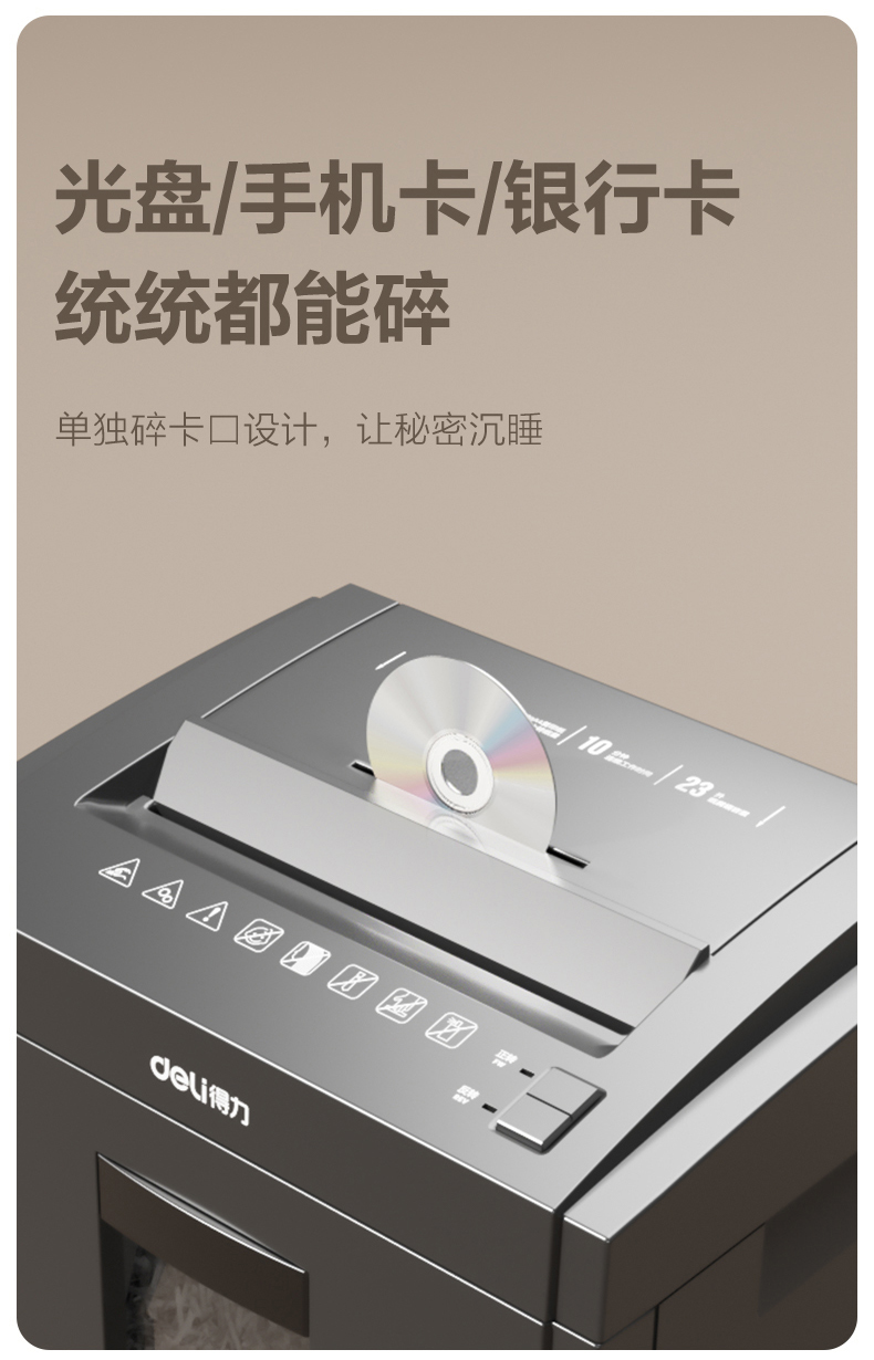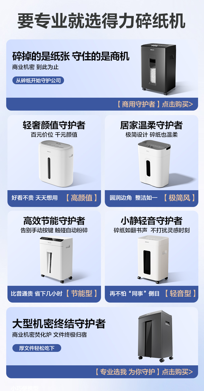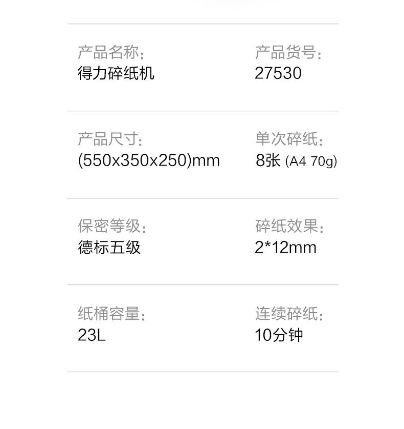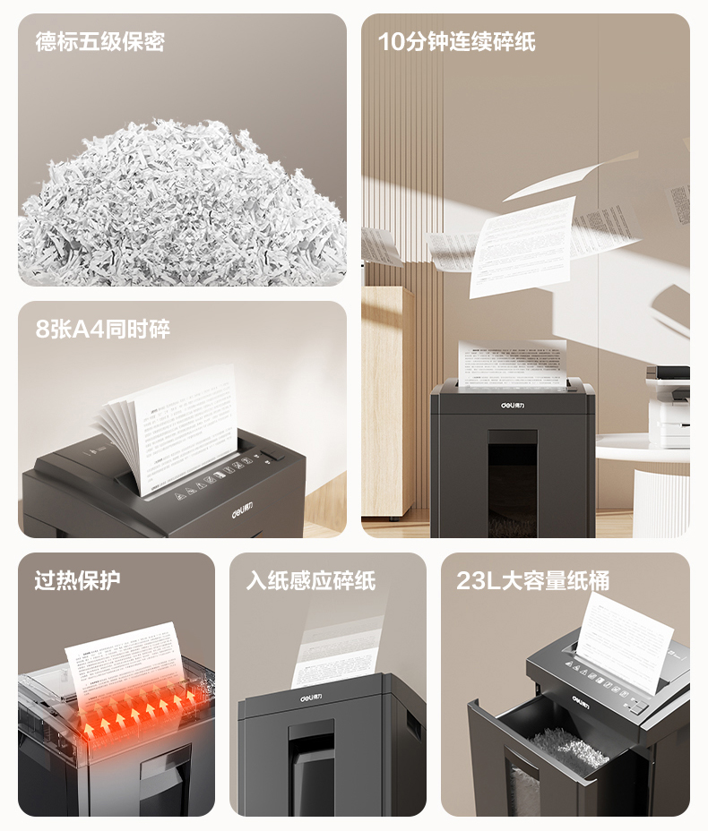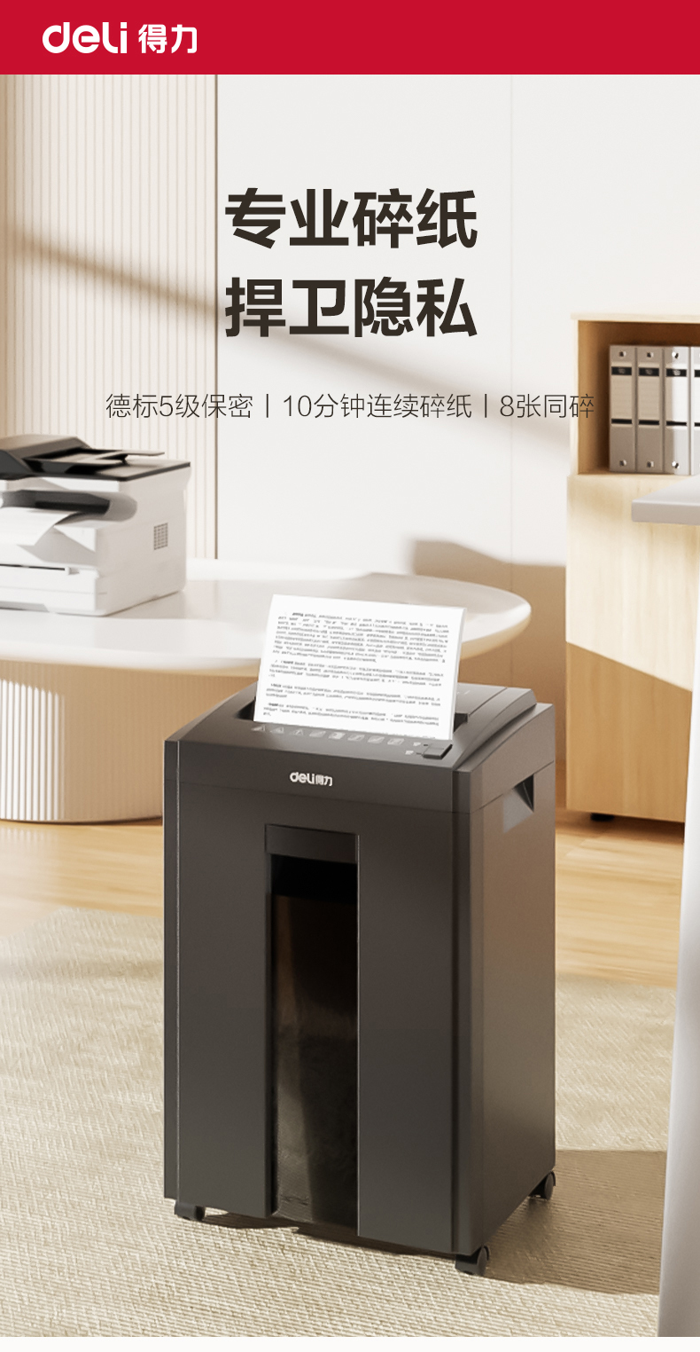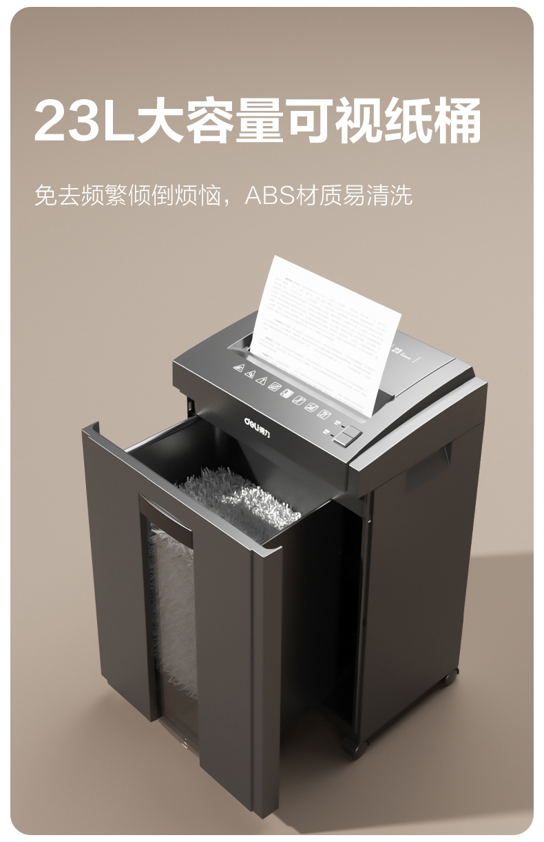 得力碎纸机办公室专用5级保密碎纸商用文件粉碎机大功率电动大型碎纸机23L家用粉纸机27530