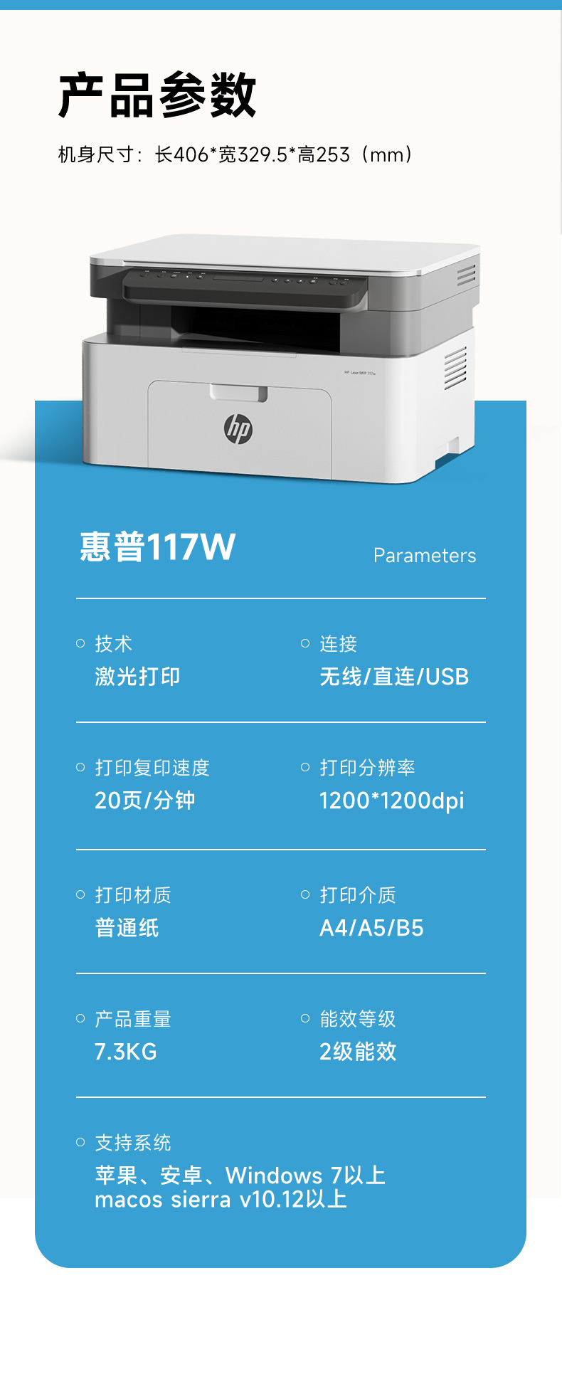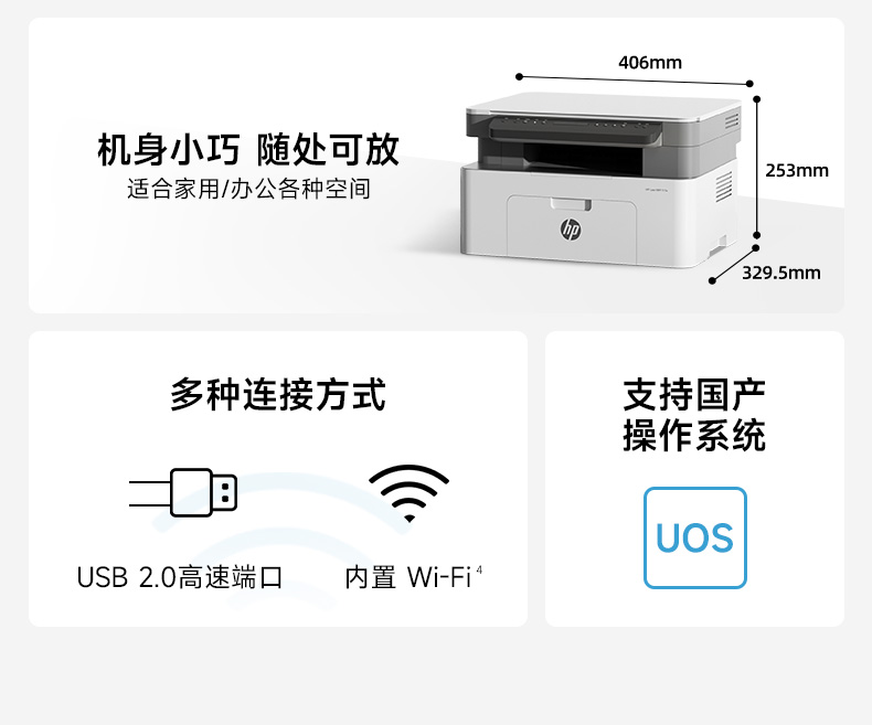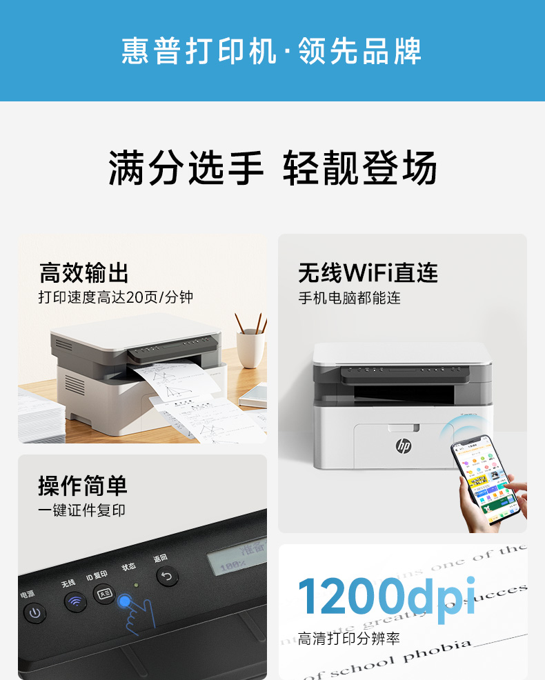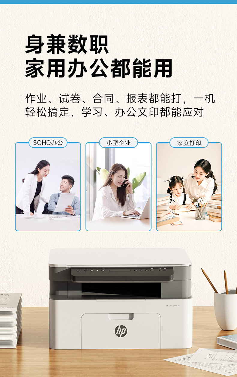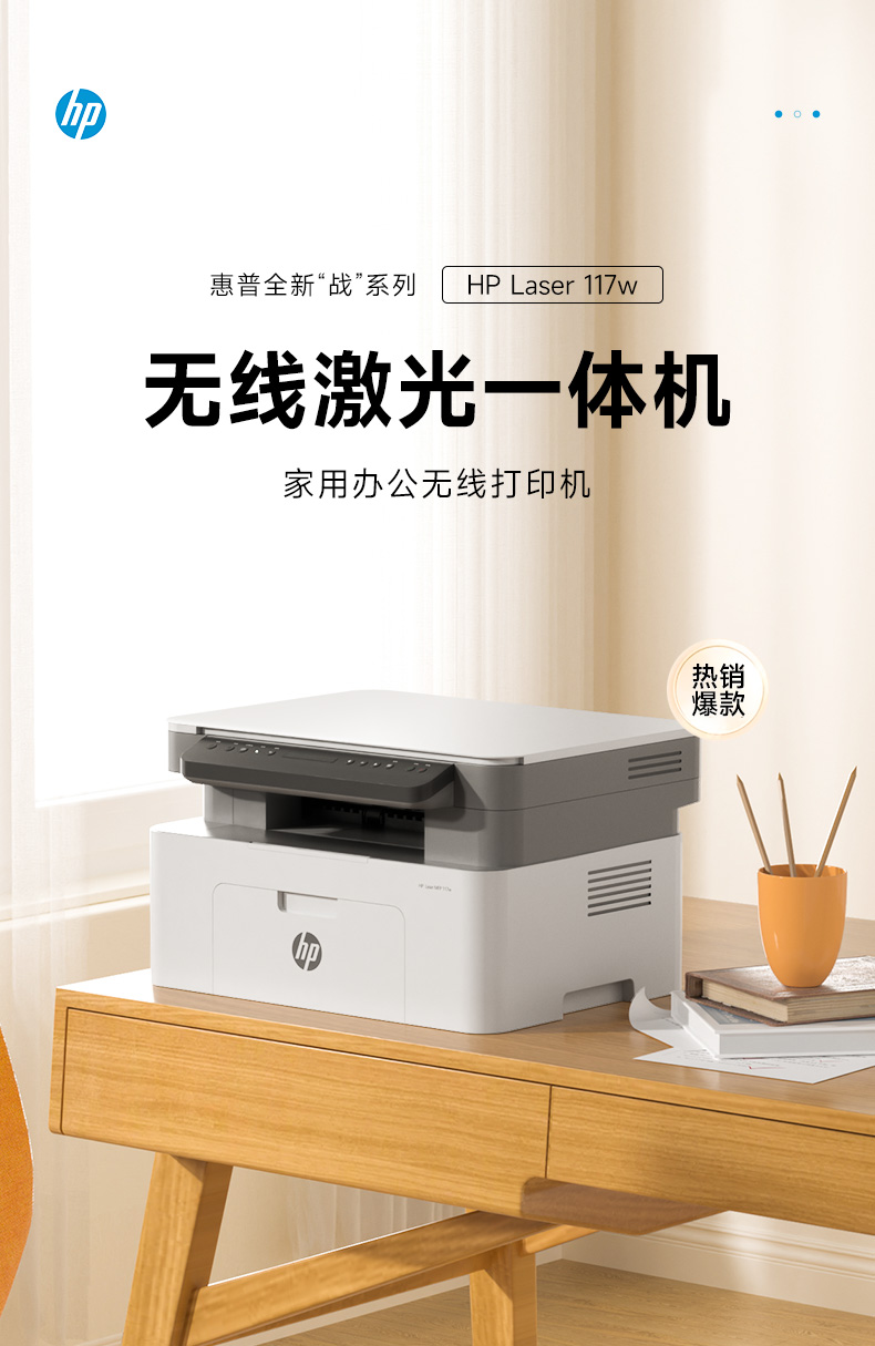hp惠普117w黑白激光打印机办公学生专用一体机家用小型可连手机无线1188nw商用家庭网络17w作业30w政府补贴A4