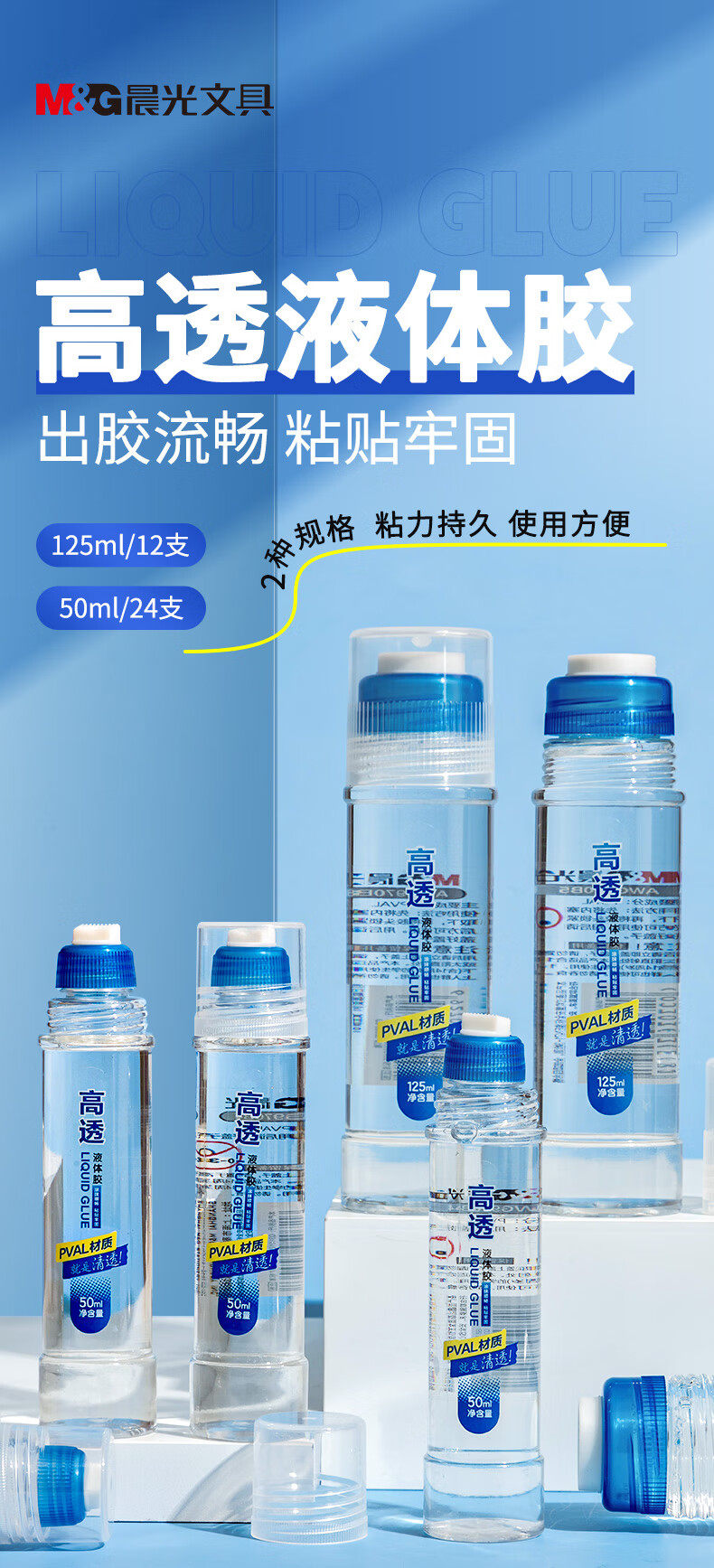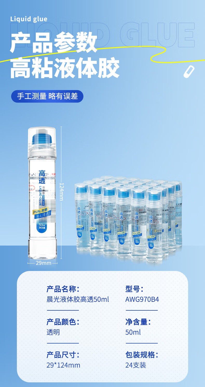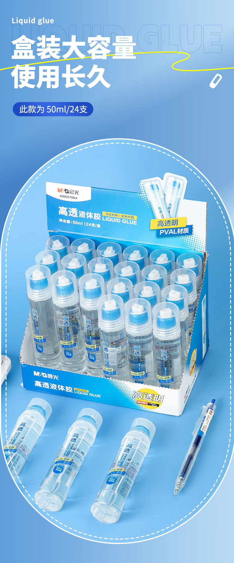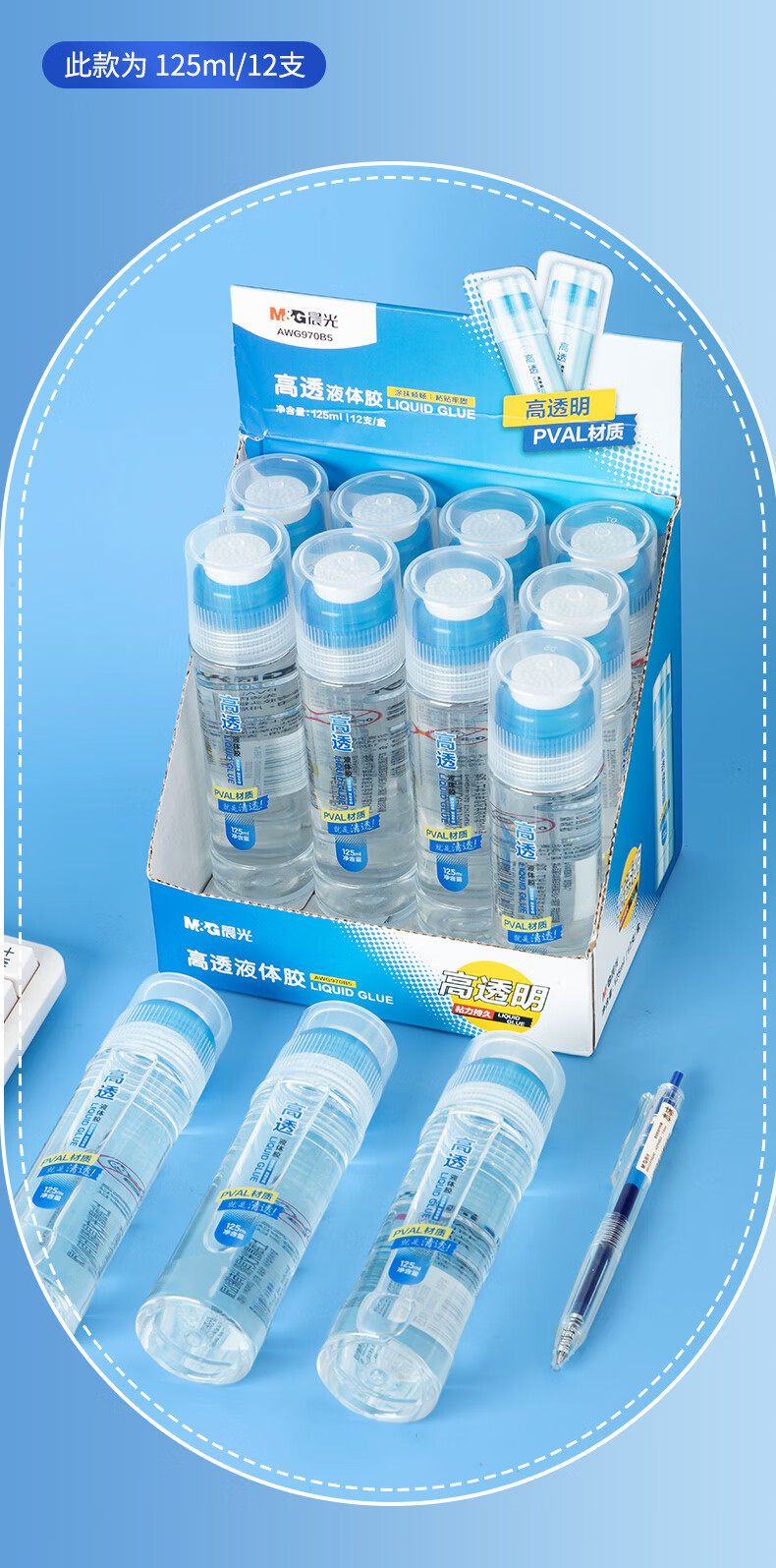 晨光透明液体胶水办公儿童学生手工手账制作12支装可水洗高粘黏液体胶饰品材料DIY制作专用财务会计文具用品