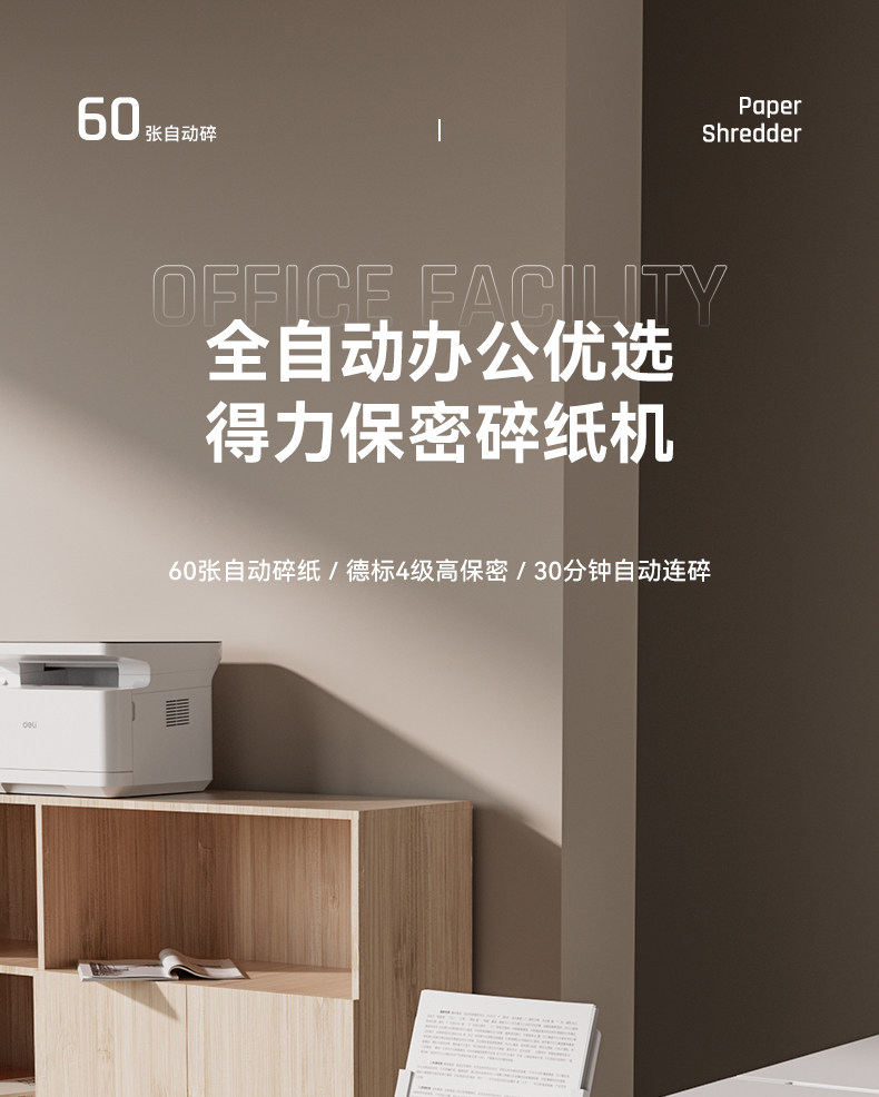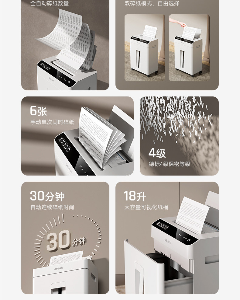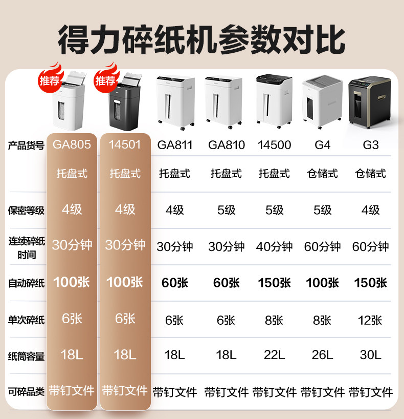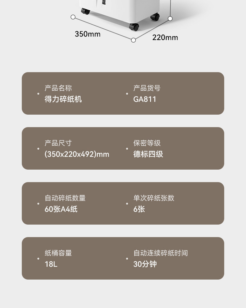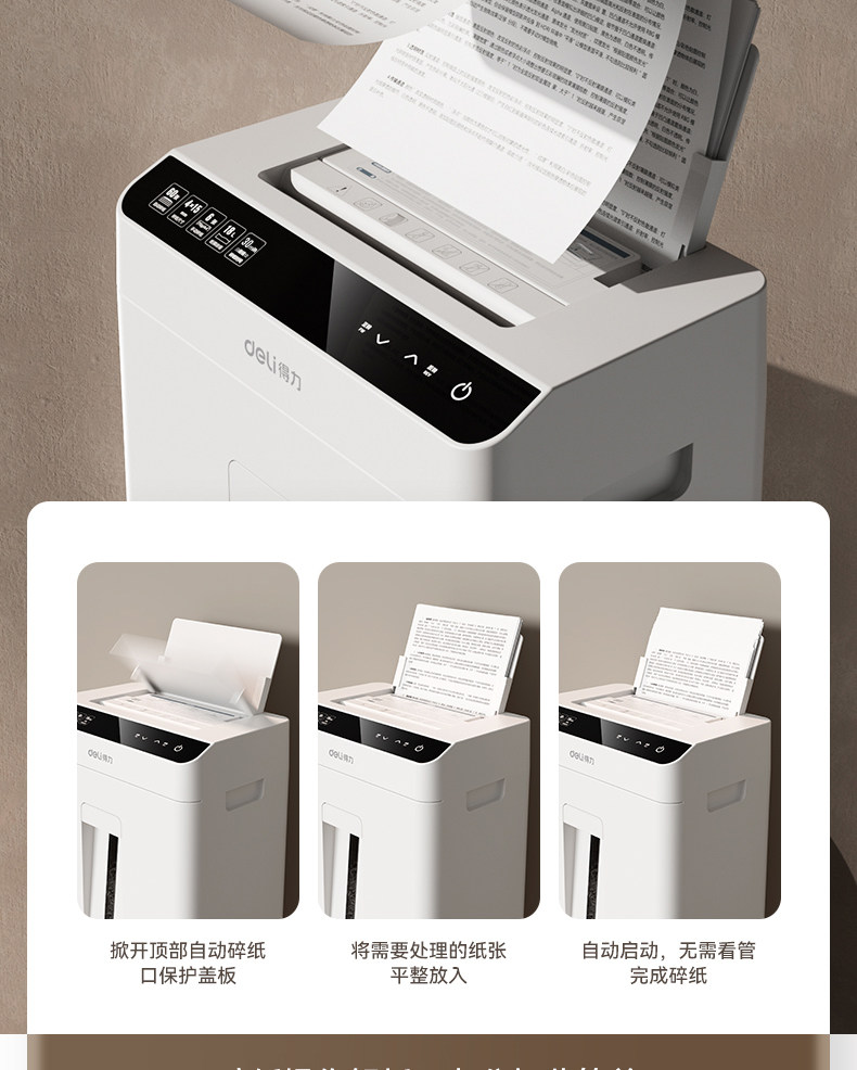 得力碎纸机办公室专用5级保密全自动碎纸机GA811G4大型自动进纸文件粉碎机资料低噪商用家用大容量碎纸机