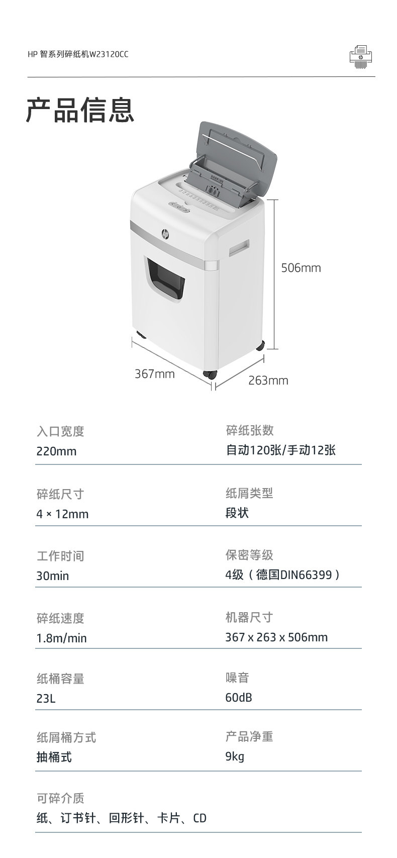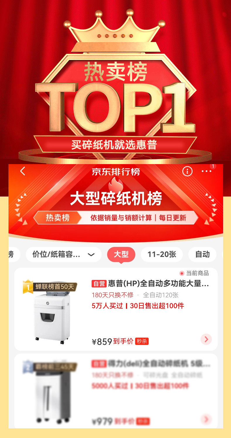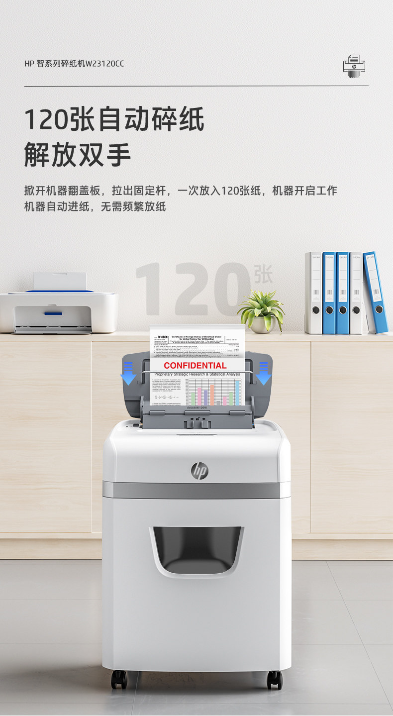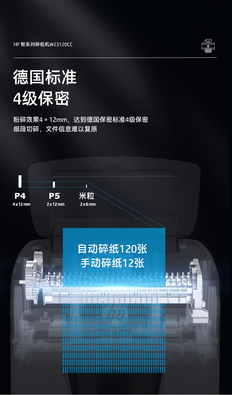 HP惠普4级保密5级保密碎纸机办公室专用全自动家用商用粉碎碾碎机