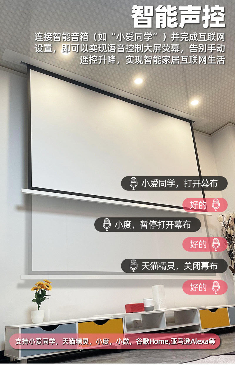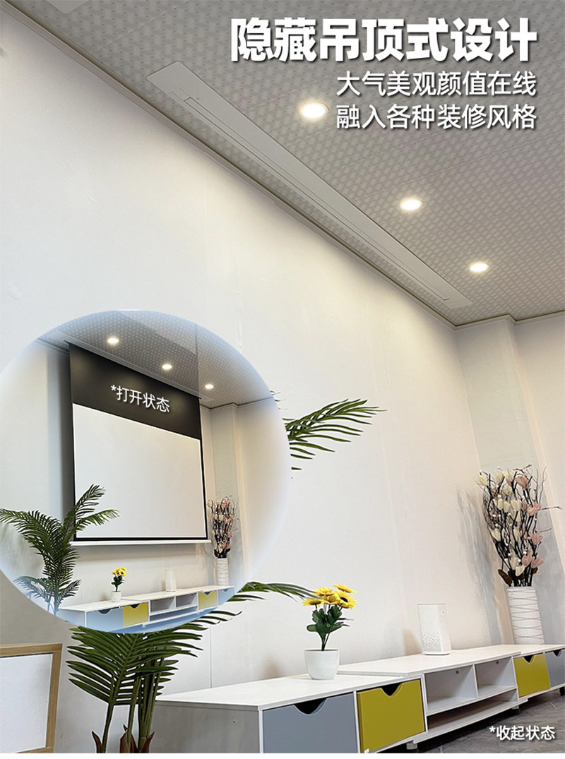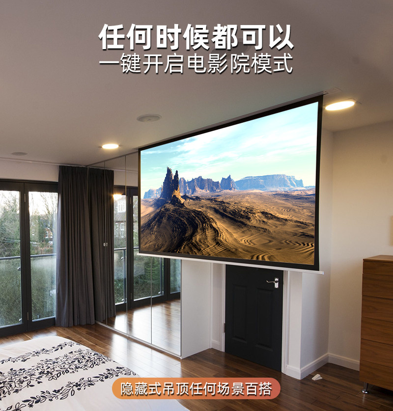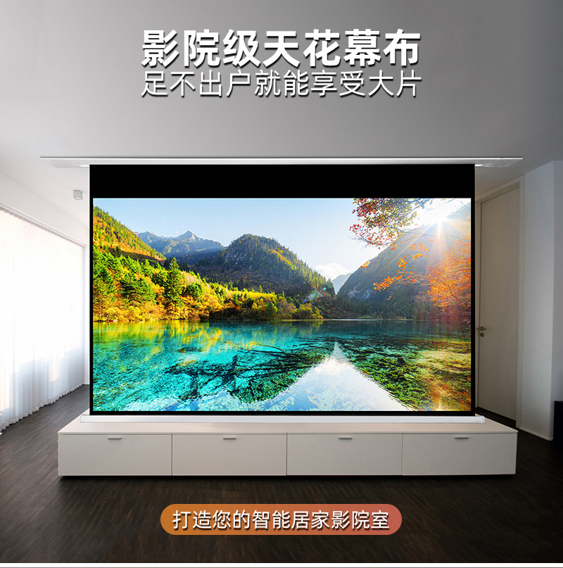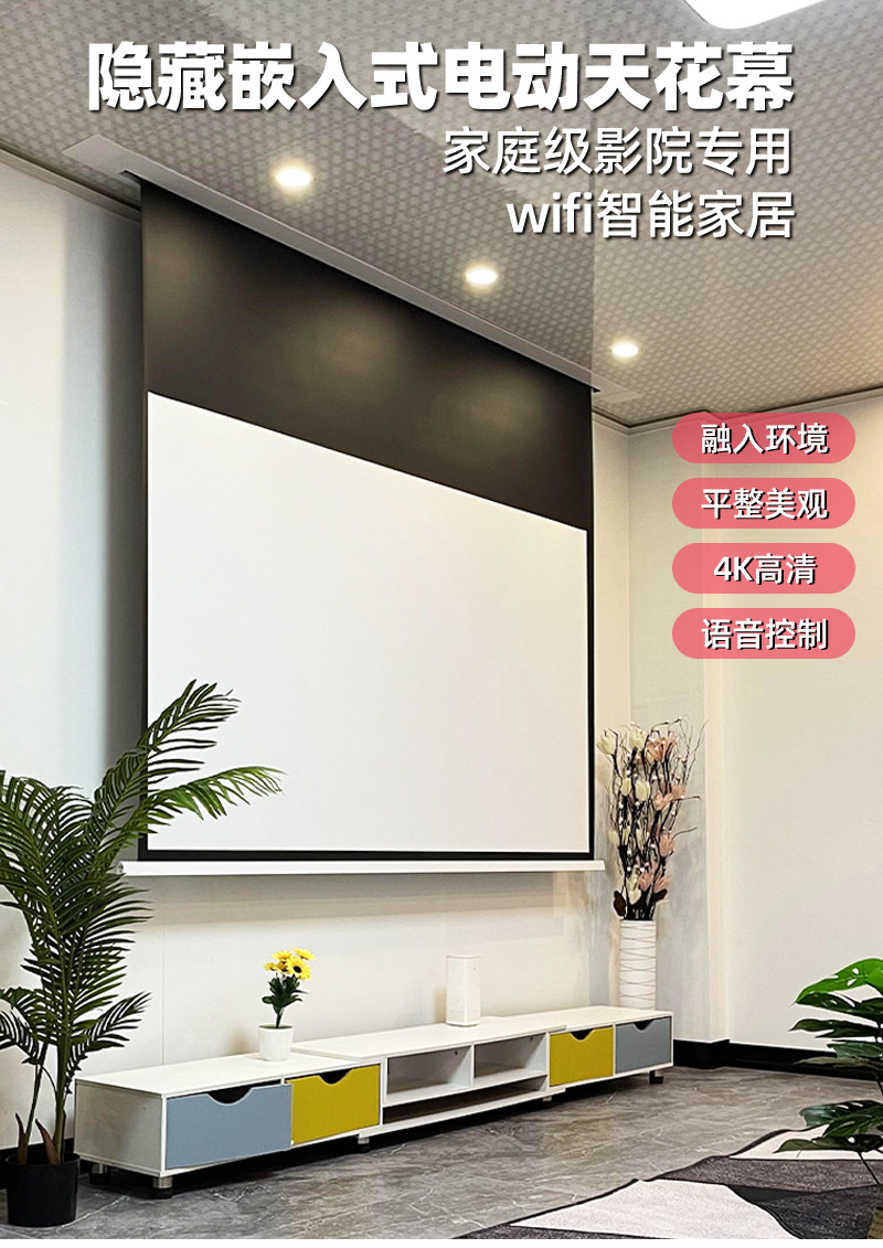 菲涅尔音响隐藏嵌入式电动投影幕语音升降高清4K适用三色投影仪家用幕布吊顶天花幕金属抗光幕布幕100寸120寸