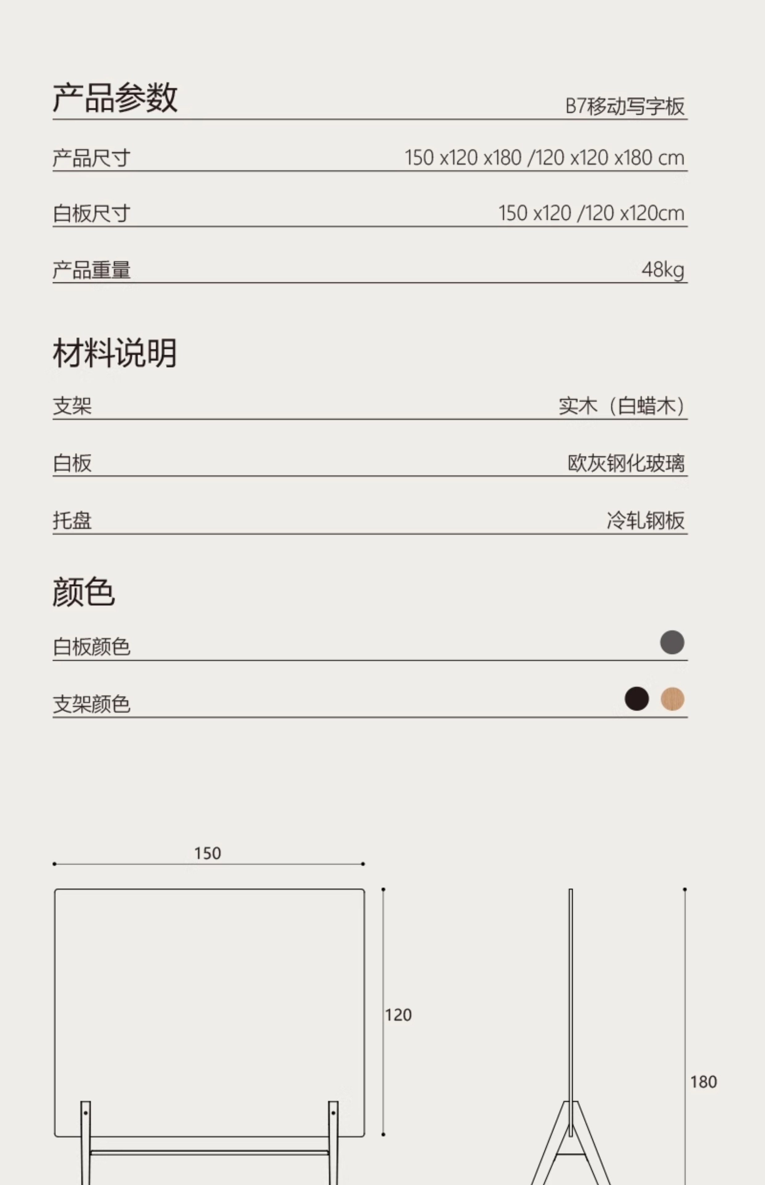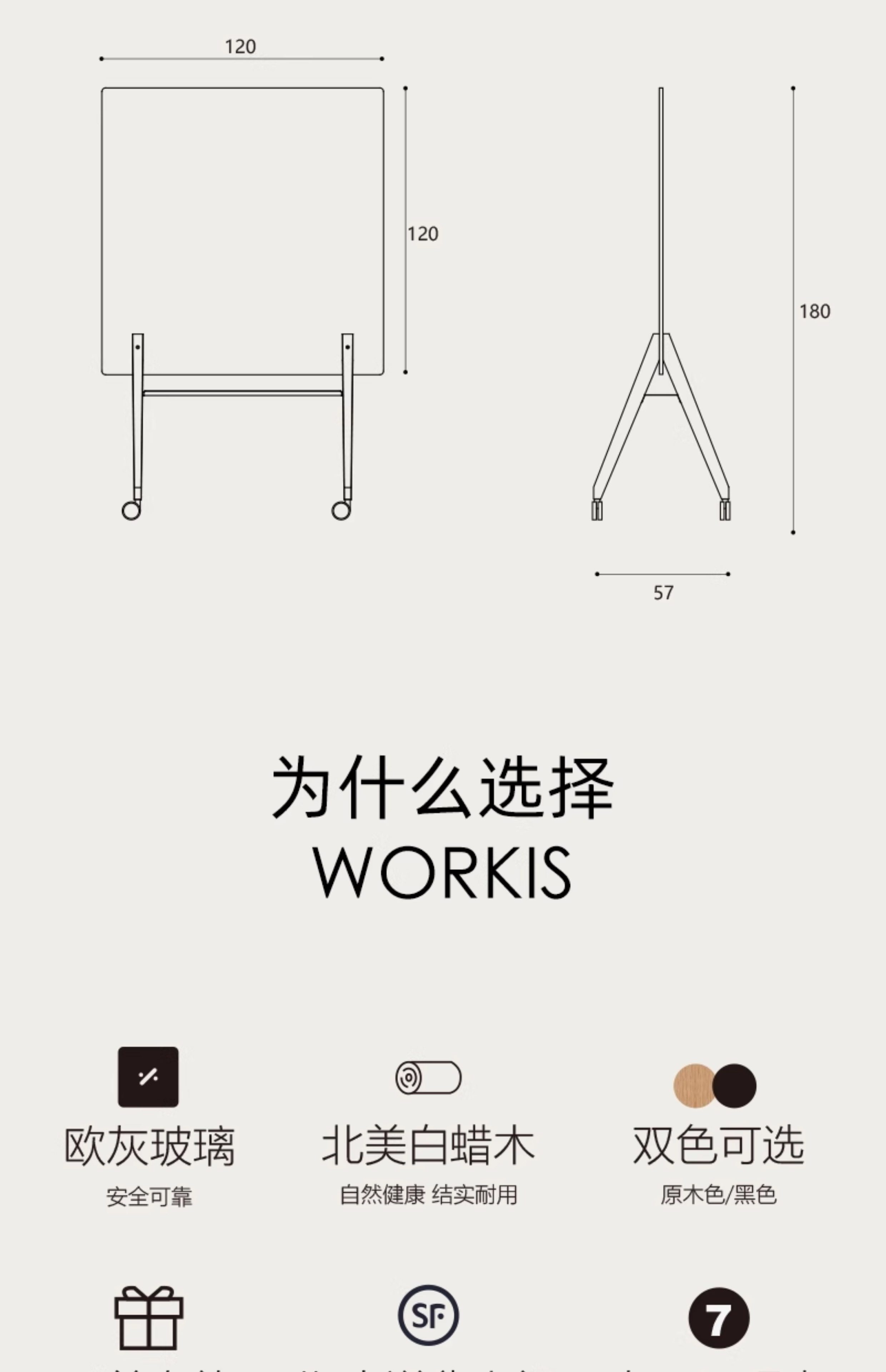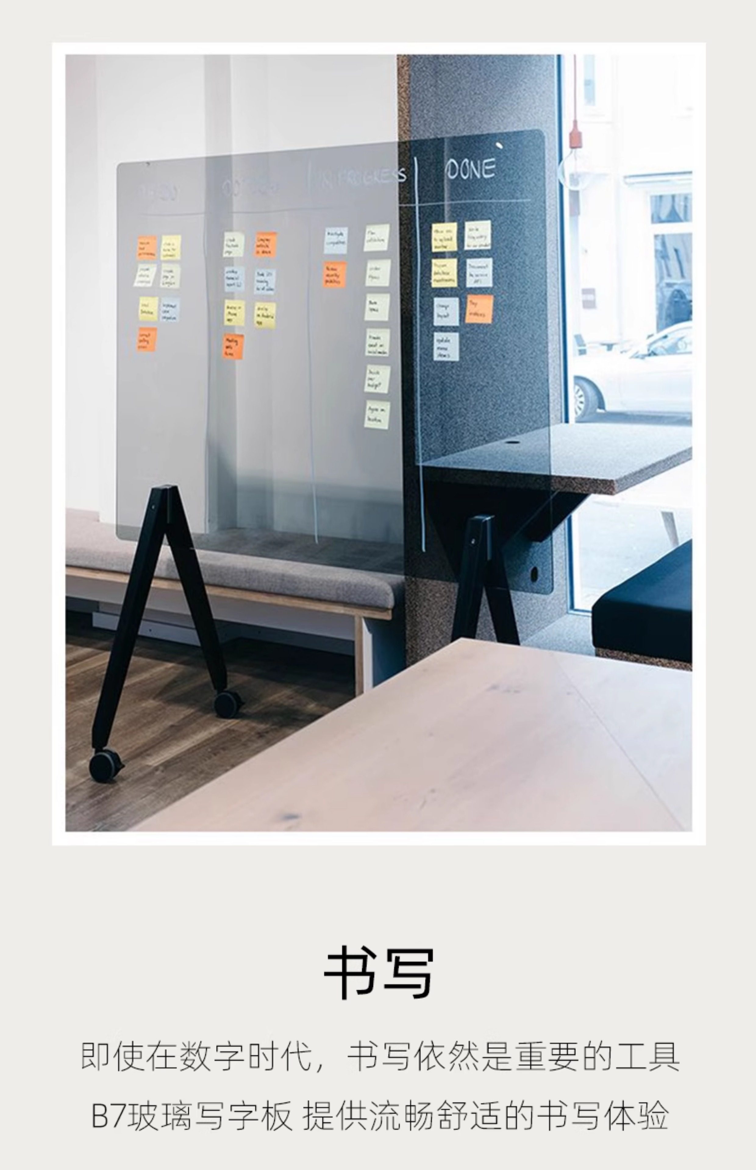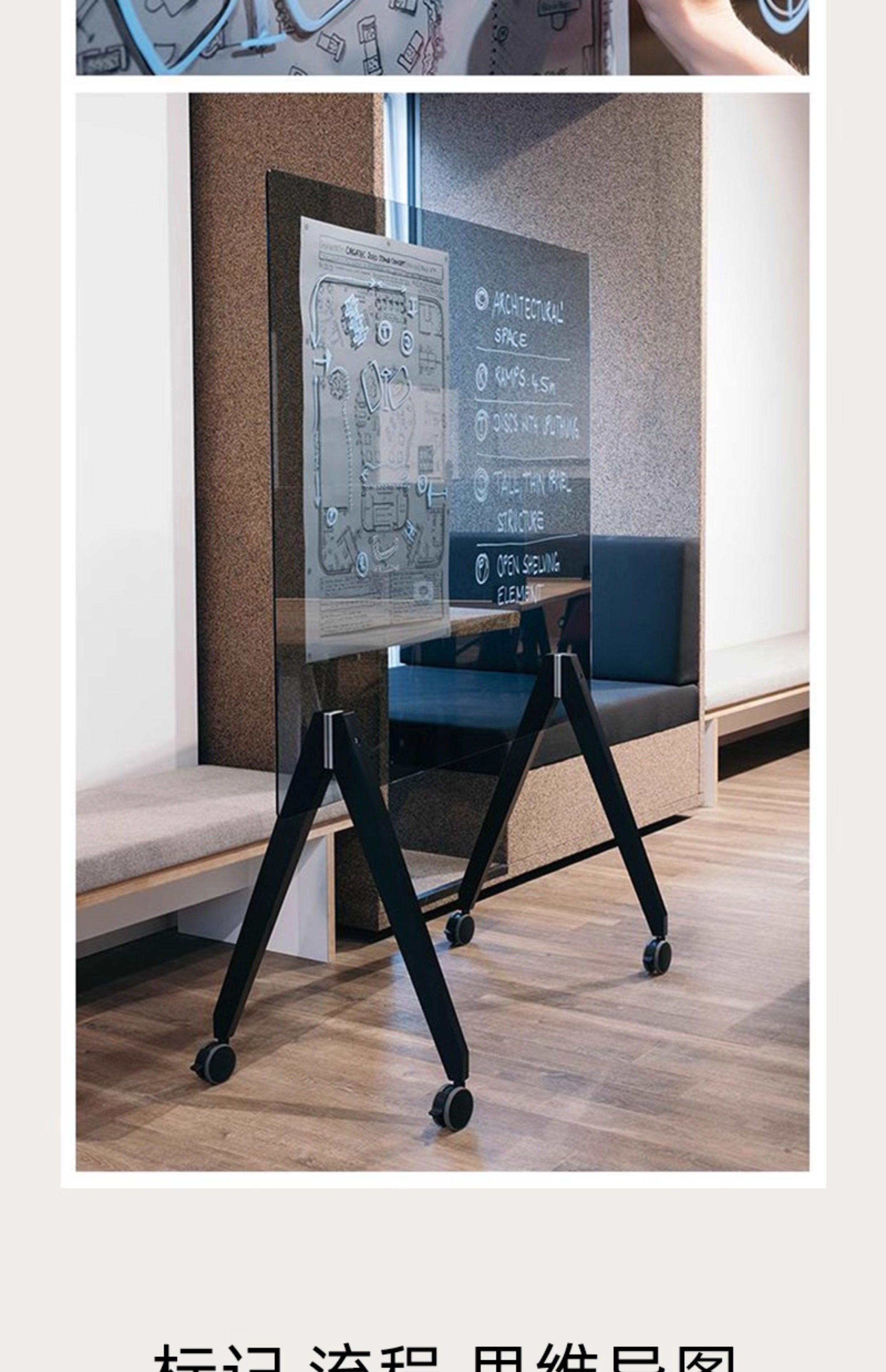 钢化玻璃白板写字板办公室教学培训会议室可擦写可移动大号支架式带轮计划落地手写双面黑板图纸标注